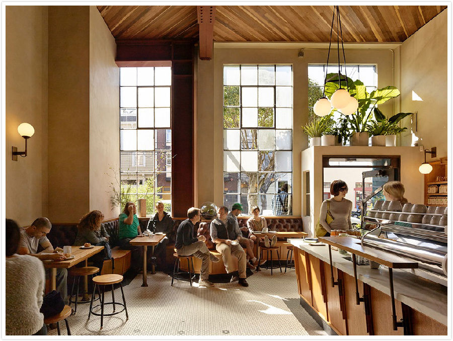 3 Blue Bottle Coffee這家應該是名⽓最⼤的一家了,Logo很討人喜歡,2012年得到兩千萬美元的投資,擴展速度還蠻快的,紐約也有分店~他們的策略是店面小,地段好~