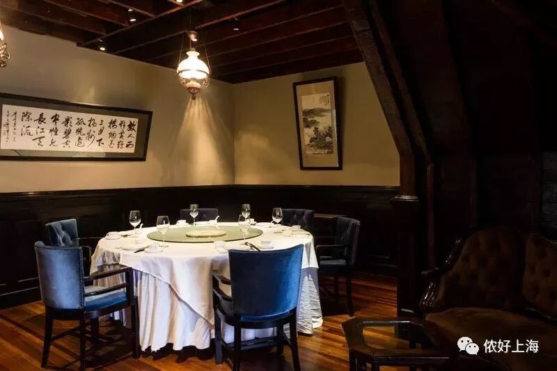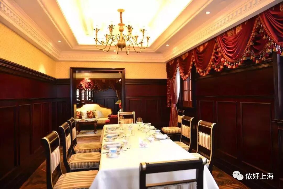 店內鋪著彩色地磚的門廊、舊摩登時代的西式傢具、民國風格的銀器櫃和吊燈,瀰漫著濃厚的老上海氣息。