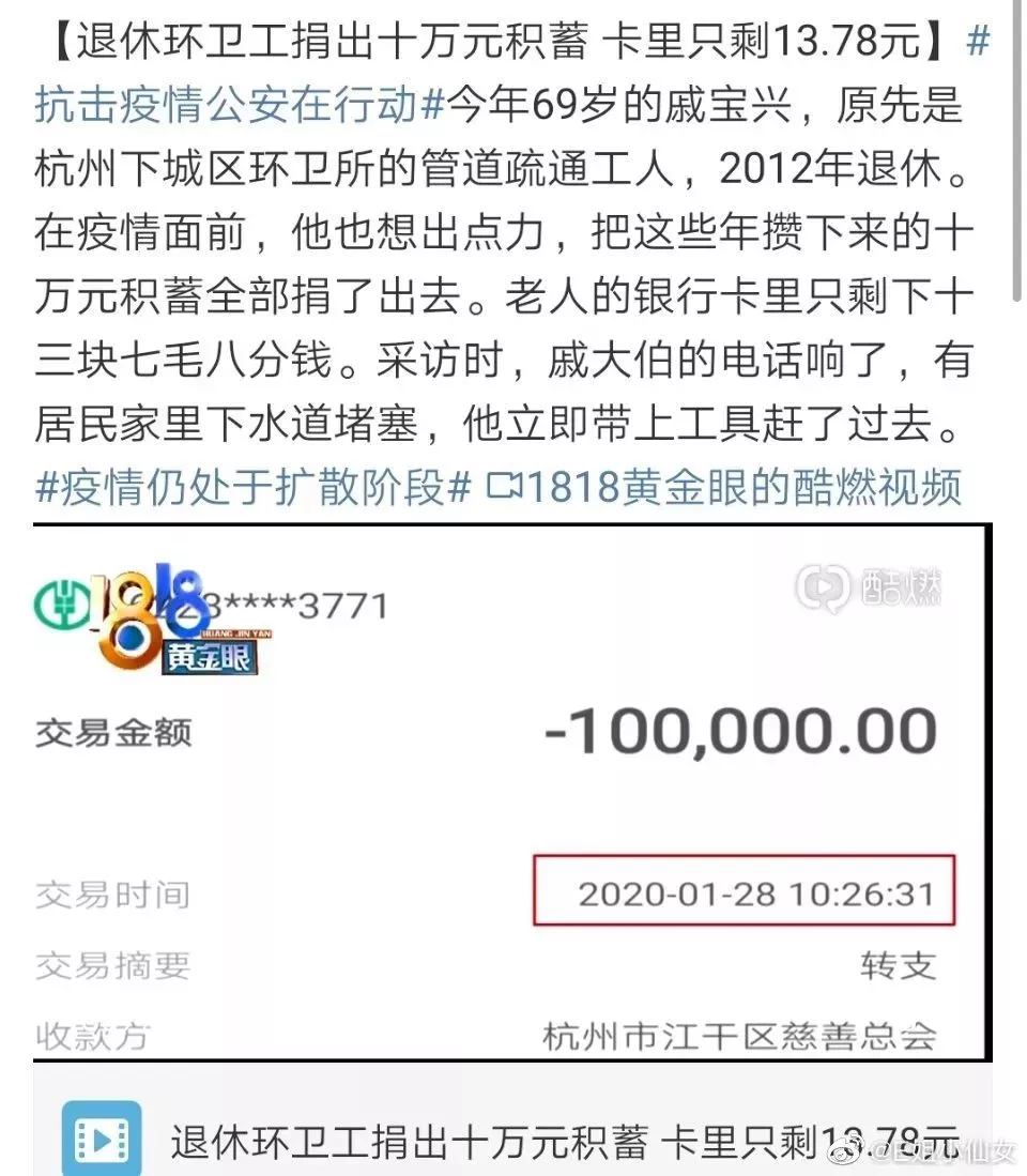 還有老人捐了錢之後,卡里只剩下10多塊的。