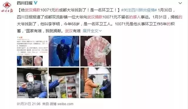 有工資1、2000塊、家徒四壁的環衛老大爺,捐出5年積蓄的。