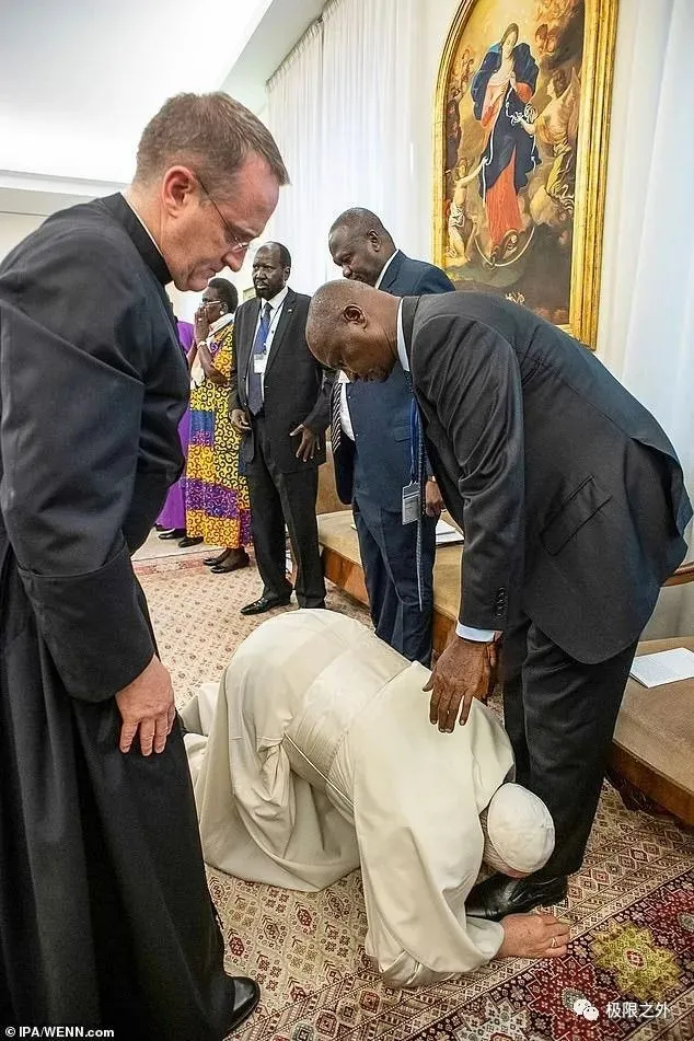 2019年82歲的教皇方濟各為了平息南蘇丹共和國的內亂,輕吻了蘇丹領導人的腳,以此希望內戰雙方握手言和。