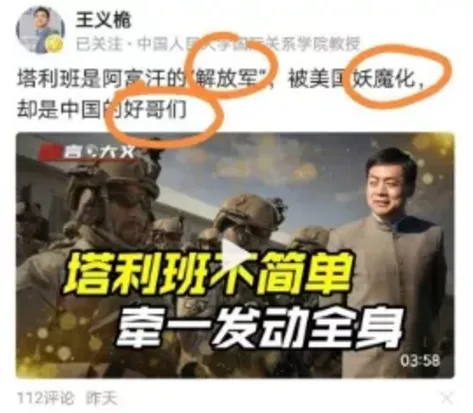 其實,在大背景淡化某帶某路的趨勢下,王教授的處境頗為尷尬。書,書賣不動,會議,會議沒人請他去,那麼在這樣的情況下,強行「碰瓷」塔利班,試圖製造「事實黏連」,可能是重獲聚光燈的一種無可奈何的方式。