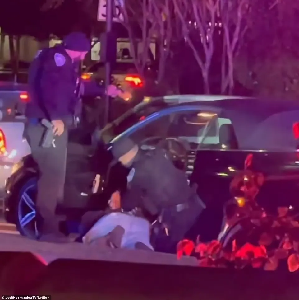 警方在現場至少成功逮捕了兩名嫌犯,視頻顯示一名警察用槍指著疑似劫匪的車,逮捕了車上的一男一女。