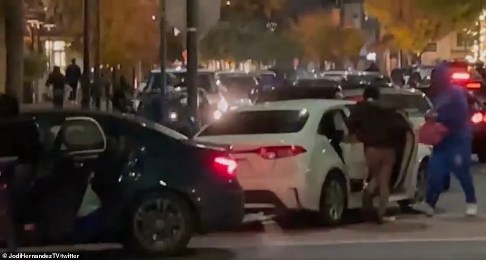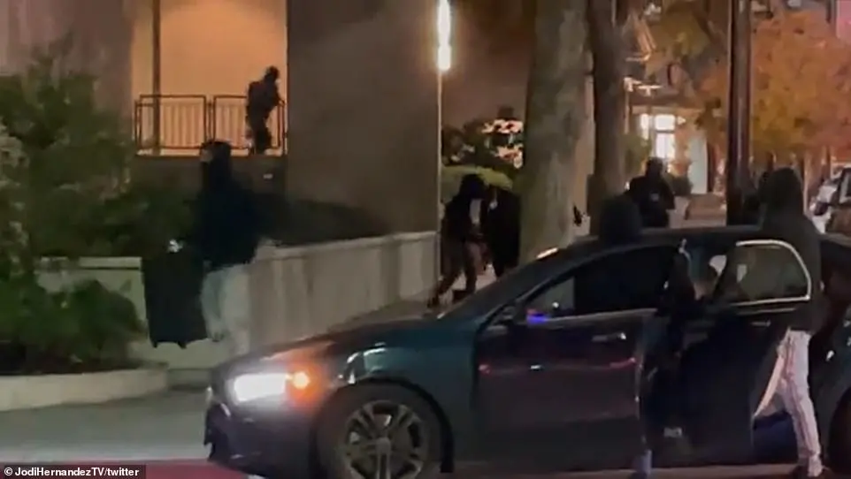 NBC 灣區記者喬迪·埃爾南德斯 (Jodi Hernandez) 目睹了整個事件,她說大約有25 輛汽車擋住了街道,這伙小偷衝進了商店,其中一些揮舞著武器!