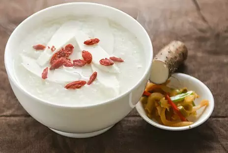 食材:枸杞、山藥(切段)、冰糖、白醋。