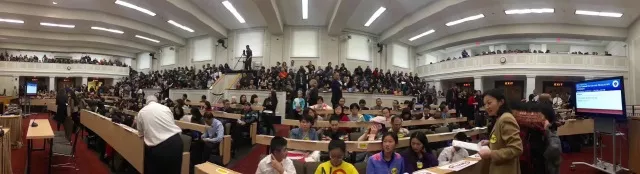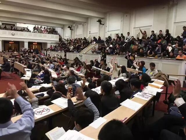 由於我們之前噓對方,叫停,咳嗽,給我方喝彩,鼓掌都被制止,後來我們就改為揮手支持。每次精彩發言結束全場都是揮舞的胳膊 ,很是壯觀。