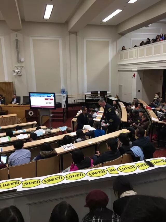 小道消息說,法案的支持者一早從中國城的老年公寓用大巴運老人去佔位,會議大廳坐滿了後面的人就不讓進去了。聽到這樣的消息,越來越多的人決定參與聽證會。雖然聽證會一點才開始,為了保證自己能夠拿到入場券,大家的出發時間越來越提前。