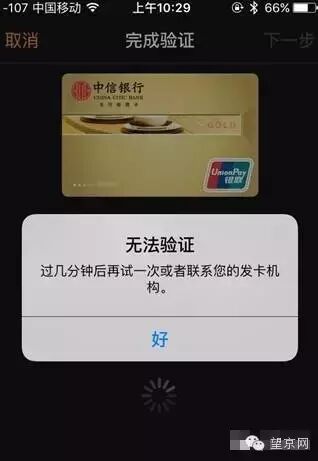[/url]另據網友反饋,國內銀行發行的 MasterCard、Visa 卡目前不能成功綁定到 Apple Pay。