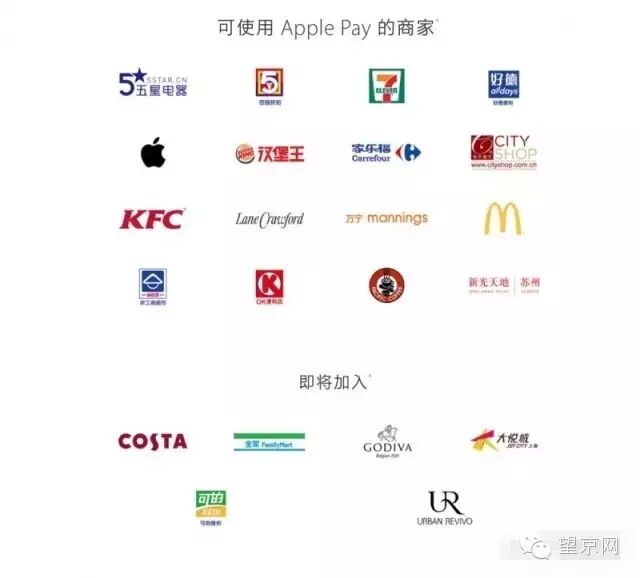 蘋果官方公示的支持商家,線下全國連鎖商戶:
