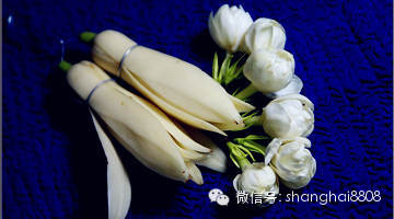 現在,在上海街頭賣白蘭花的阿婆不知去了哪兒,越來越少,好怕這樣的民間風俗銷聲匿跡。偶爾遇見時,看到樸素的籃子里,依舊沿襲了經典藍布墊著的白蘭花,湊近時聞到的陣陣芳香,感覺是這個城市熟悉而又久違的味道。
