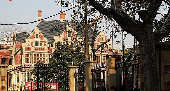 愚園路404號,市西中學前身為 「尤來旬學校」,於1869年由具有中英混合血統的尤來旬女士創辦。后英商漢璧禮爵士捐贈了大筆錢款,學校得到了長足的發展,先後易名為「漢璧禮蒙童養學堂」、「西童公學」。1946年,在「漢璧禮西童公學」基礎上,市西的創始人趙傳家建立了市西中學。
