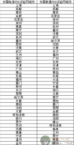 目前我國FDD網路並沒有商用,但工信部已經批准了聯通和電信各在40個城市內進行FDD/TDD混合組網試驗,如果你只對FDD鍾情,又剛好在這些城市裡,當然,也不是不可以選。下表是目前FDD試驗網的城市列表,大家可以看一下有沒有你所在的城市?