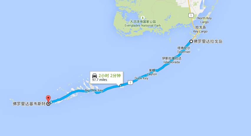 前往西礁島的公共交通並不方便,因此自駕是最好的出行方式。從邁阿密出發到西礁島,車程大約3.5個小時。