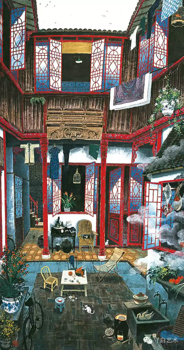 重彩畫《石庫門留影》122x70CM 2007年 李守白