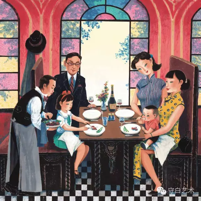 重彩畫 《西餐印象》70x70cm 2013年 李守白