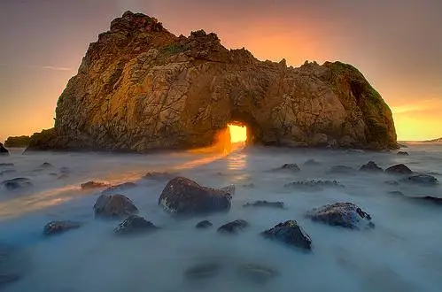這是加州1號公路上最受歡迎的國家公園,是美國當地家庭遠足度假的首選。紅木,海岸,高山,風景優美獨特,堪稱世界一流。Pfieffer Beach 是全世界唯一一個紫色的沙灘。門票5刀/車。沙灘本是紫色礦石,被海浪沖碎成砂。沿著沙灘往深處走,紫色越來越明顯,到沙灘盡頭就是大片真正的紫色沙灘,美不勝收。這裡最佳觀賞時間是近日落時分。