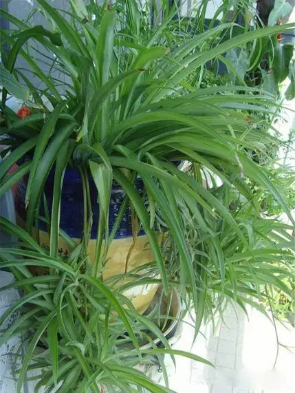 39、吊蘭:吊蘭屬多年生常綠草本花卉,性喜溫暖,半陰和空氣濕潤環境,要求土壤疏鬆,肥沃,排水良好。盆土宜偏干,要經常向葉面噴清水,室內溫度保持不低於10度即可安全越冬。