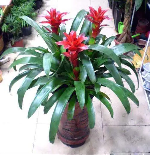 45、水塔花:又名鳳梨性喜溫暖濕潤,屬於半陰性花卉,要求通風良好,喜腐殖質豐富、排水透氣良好的酸性沙質壤土。可選用腐葉土、苔鮮及園土沙、混合另加少量骨粉作基肥,生長季節每半個月施一次稀薄液肥,開花前增施1---2次0.2%磷酸二氫鉀,則花朵的色彩會更加醒目,花期、花后及休眠期均應停止施肥。生長適溫為20---28度,炎夏氣溫超過30度時,要做好通風降溫。冬保持在15度以上,多見一些光以利壯。