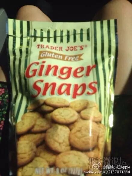 @賭城小妞Apple:生薑餅乾,Trader Joe's銷量最大的商品!怕吃不慣,沒買大盒的。買了中包的!果然被種草了,姜的味道很淡餅乾有點烤焦的香味!好吃!其貌不揚但是不要因此就忽視它哦!