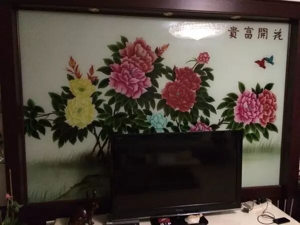緊接著,電視背景牆,花開富貴,盛開的朵朵牡丹,外加兩隻翩翩飛舞的小蝴蝶,耳邊響起了龐龍的歌...