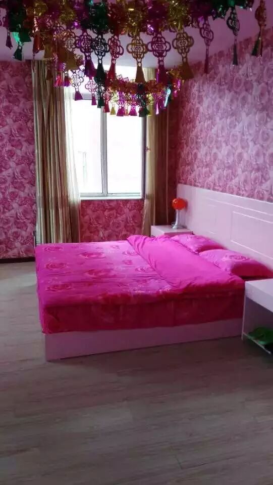 婚房卧室,滿牆的玫瑰,浪漫氣息濃厚。