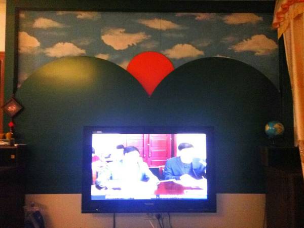 看到這個衣櫃的時候我當場就淚崩了!!!整整一面牆啊 鋪滿了這個荷花啊、海鷗啊、池塘啊、草原啊、藍天啊,所有的美好元素都用上了,好像這些才是社會主義和諧社會應該有的樣子,媽媽我們要這樣表決心么?