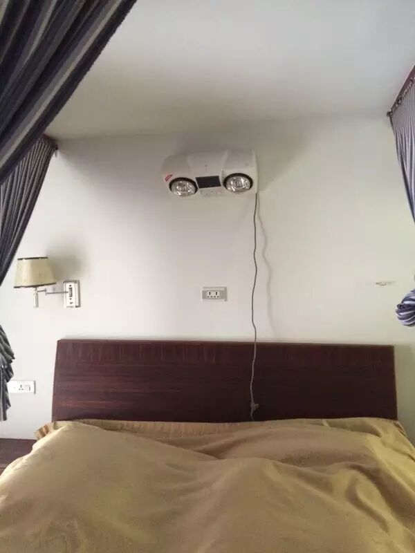 還有我爸爸在他床頭上方裝了個浴霸~~