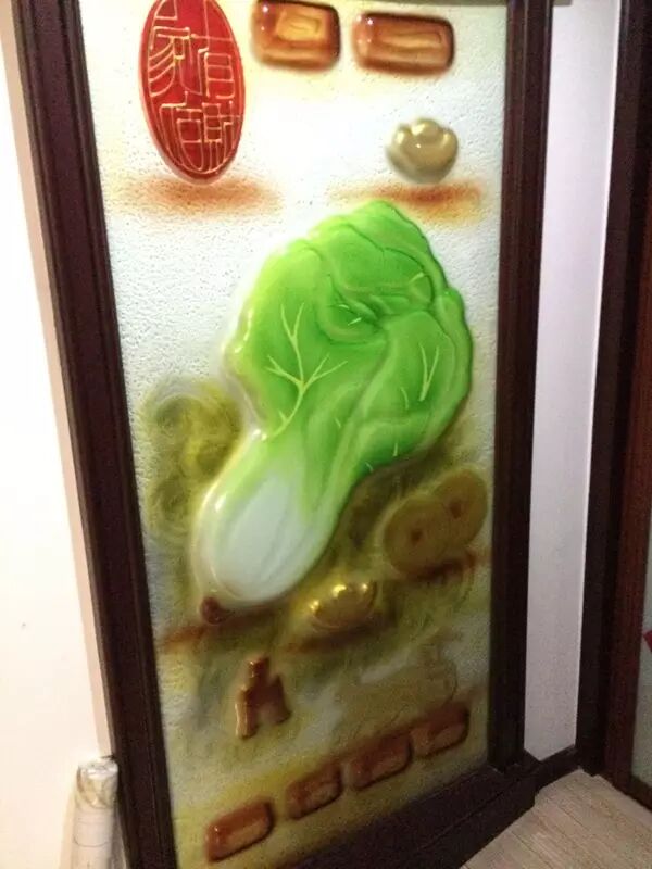 從進門開始,一開大門看到一顆玻璃大白菜,家有百財,立體感甚好。