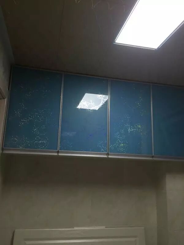 上圖這個藍的不正常非常廉價的柜子我也忍了!但是!為毛廚房門要是這種讓人心碎的小藍花啊!媽媽啊,就老老實實用玻璃門什麼的不行嗎!!