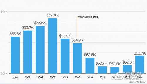 而中產階級也並未過的更好。數據顯示,2004-2014的十年間,美國中產階級扣除全部開支后剩下的資金從17000美元跌至6000美元,暴跌了65%。