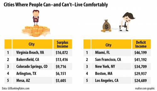 該市家庭收入中位數為54,228元,扣除舒適生活花費之後,每年還有9,716元的盈餘。