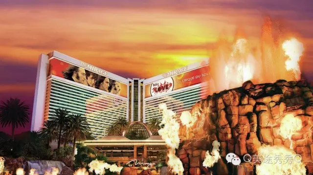 Mirage酒店門前的火山噴發秀,火山爆發時火光和煙霧會噴向空中達到30米高,融化的岩漿也從火山上傾瀉而下,逼真的「火海」和緊湊的音樂音效讓整個表演過程扣人心弦,是在拉斯維加斯必看的奇觀。