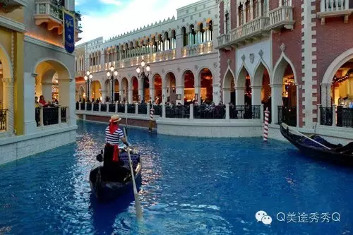 威尼斯人大酒店(The Venetian)主題就是水城威尼斯,酒店內模仿建造了威尼斯運河,遊客可以乘坐小舟在酒店裡遊玩,義大利船夫會邊划行邊唱歌如《我的太陽》,仰望的美麗天空也是人造的,當然不可缺少的還有著名的聖馬可廣場。