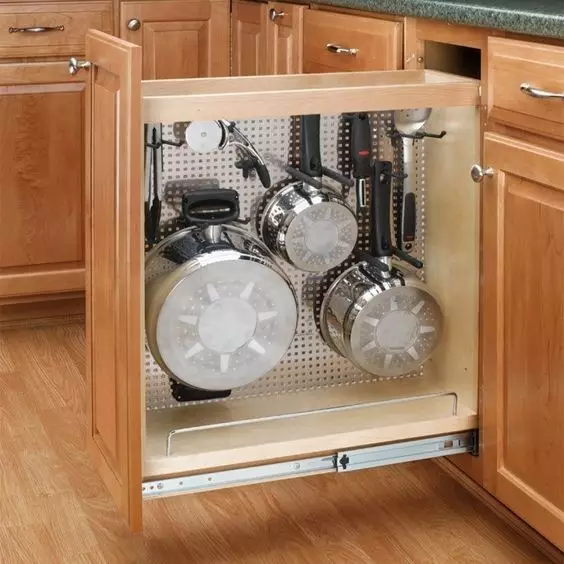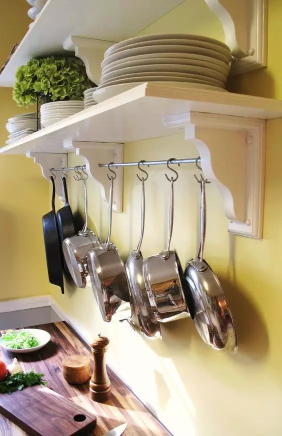 安一根不鏽鋼管也行,把鍋一個個掛好,整齊!
