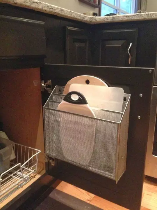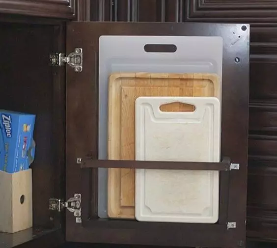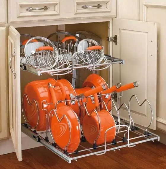 櫥櫃門也不能放過,安兩根架子不僅能放鍋蓋,放上鍋具也毫無壓力。