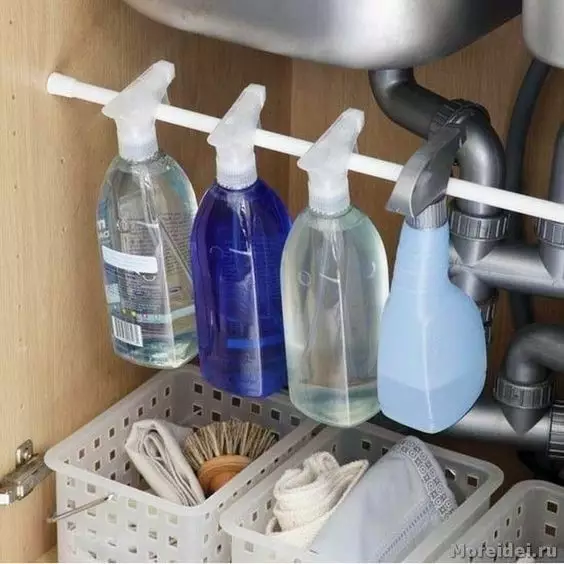 水槽下方的空間可以安上一根不鏽鋼管,用來掛置各種清潔用品