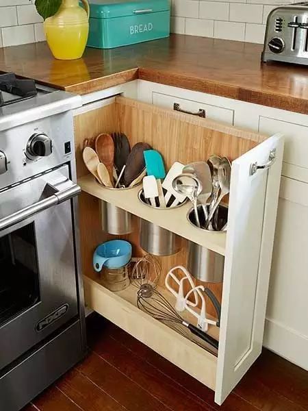 柜子間的縫隙還可以用來放刀具、放鍋等~