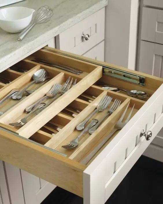 柜子留一個抽屜放刀叉,不管是插起來還是直接放置~這樣是不是看起來方便了許多?