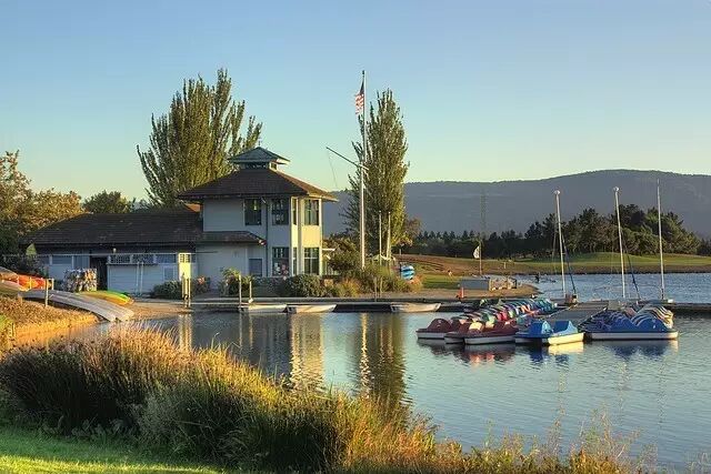 很難想象這個海邊人工圍出來的湖曾經是個垃圾填埋場,而現在這裡已經成為山景城居民們的公園。Trail只有一邁多,繞著湖邊走,很輕鬆,也可以騎自行車;此外還有18洞高爾夫球場,兒童遊樂區,當然還少不了各種水上運動。