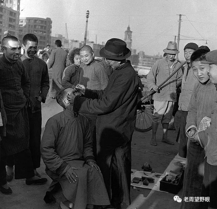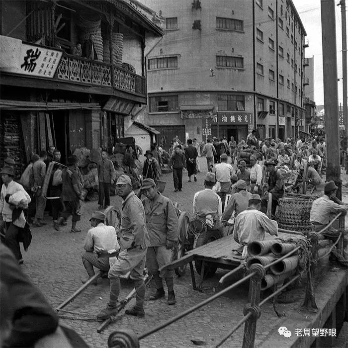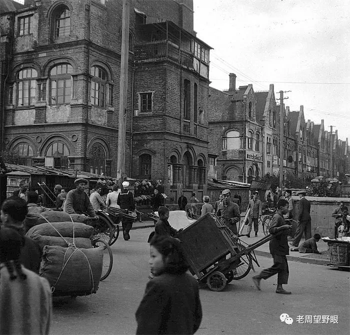二戰期間沃爾特在美國海軍服役,1945年10月12日到1946年2月5日期間,在上海呆了四個月不到一點。當時沃爾特掌管船上的暗房。每次上岸,他都會用捲煙換一卷膠捲,在上海街頭拍攝了很多資料畫面。后選中其中的96幅集結成冊出版發行,書名為「Shanghai in 1945」——1945年的上海。今天既然說到這張照片,說到沃爾特,說到大閘蟹,我做了點功課,把這套書里全部96張照片一併貼在這裡,看看1945年的上海,除了貧困家庭靠吃陽澄湖大閘蟹艱難度日以外,還有些什麼樣的景緻?