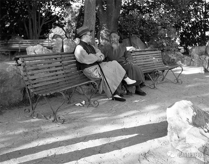 50、Two Old Men Talking on Bench 公園長凳嘎山胡的老人