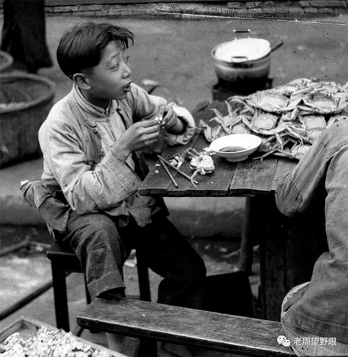 蟹在我們小的時候,好像不是什麼稀罕玩意。記得有一年住在隔壁的崇明人送我們一蒲包(當年蟹都是放在草編的蒲包里的)蟹,一不小心逃了一隻,爬在陰溝里不出來。老祖母看了看說:「算了不要掏了。」後來蟹的價錢越來越貴,緣於香港人喜歡吃蟹,蟹成了出口商品,就稀罕起來了。當年很多上海人「跑路」去香港,把上海的生活習慣帶了過去。本來老廣一盅兩件嘆世界也蠻好,看到有錢的上海佬都喜歡吃大閘蟹,也跟起風來,無腸公子就此身價百倍,害得國人要吃幾隻蟹都要精打細算,這才有了「貧困家庭靠吃陽澄湖大閘蟹艱難度日」的黑色幽默。不過我說的「不是稀罕玩意」,並不包括陽澄湖大閘蟹。「蟹」只是個統稱,品級是永遠存在的。崇明蟹,我們老家無錫的太湖蟹,一直不是特別稀罕的玩意,但陽澄湖大閘蟹,因為其獨特的地理水貌氣溫等原因,自古以來就不是普通老百姓能隨便吃的家常菜。就好比一樣吃條魚,魚塘里養的鯿魚和海里捕的石斑,檔次不可以道里計。這張照片里的小朋友,看穿著打扮算不上貧困,卻也絕不富裕。一桌子蟹放在桌上,不可能是陽澄湖大閘蟹,可能是崇明烏小蟹吧。既然說到這張照片,倒想說說它背後的事情。這張照片的原版是這樣的: