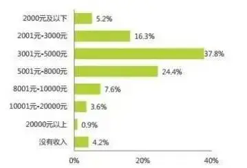 小王和妻子是雙職工,月薪均在萬元以上,在中國全國範圍內進行比較,這個收入已經甩掉了90%的人群了,我們來看看2015年的一份月收入分佈數據圖。大家平時心靈雞湯看多了會覺得月薪上萬不算多,但是拉出全國的數據一看,才知道月薪上萬已經屬於中國TOP10%的人群了。