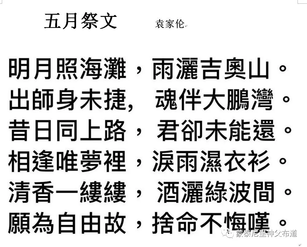 袁家倫為拜祭活動撰寫的祭文