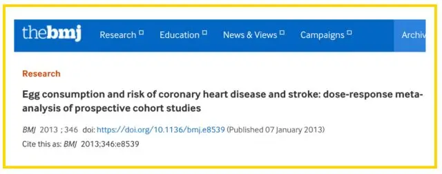 2013年,《英國醫學期刊》刊登一項薈萃分析,整合了17份、多達308萬人的研究,發現雞蛋攝入與心臟病發生 無關。
