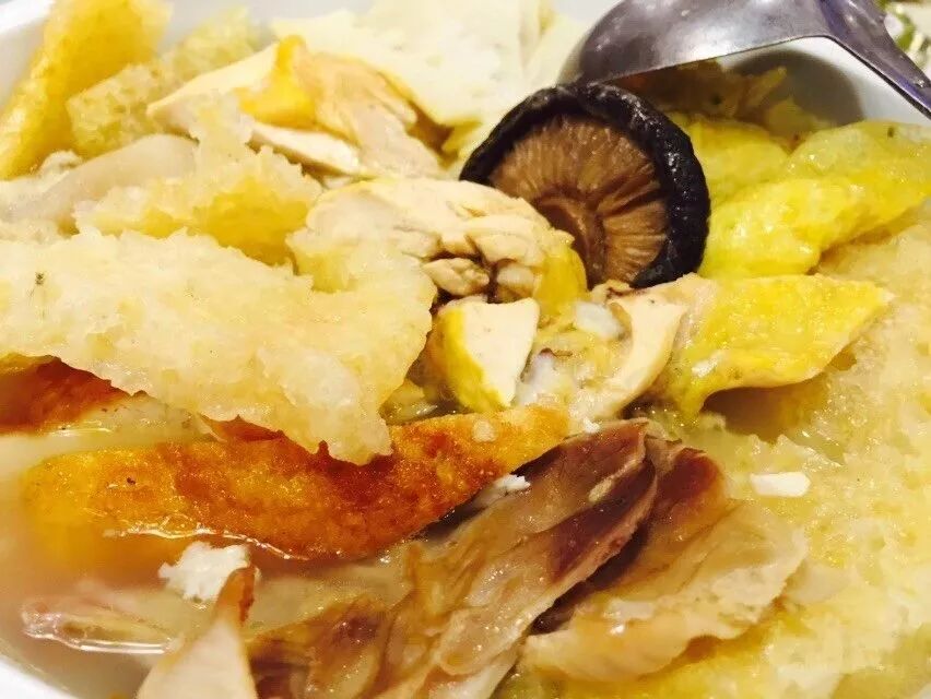 蒸三鮮太嗲了!也是是最本地的上海本幫菜,滿滿的一盆,寓意著來年富貴,上層有咸雞、筍片、熏魚、蛋卷、肚片,下面還有肉圓、豬蹄、肉皮,尤其是湯,鮮掉眉毛!