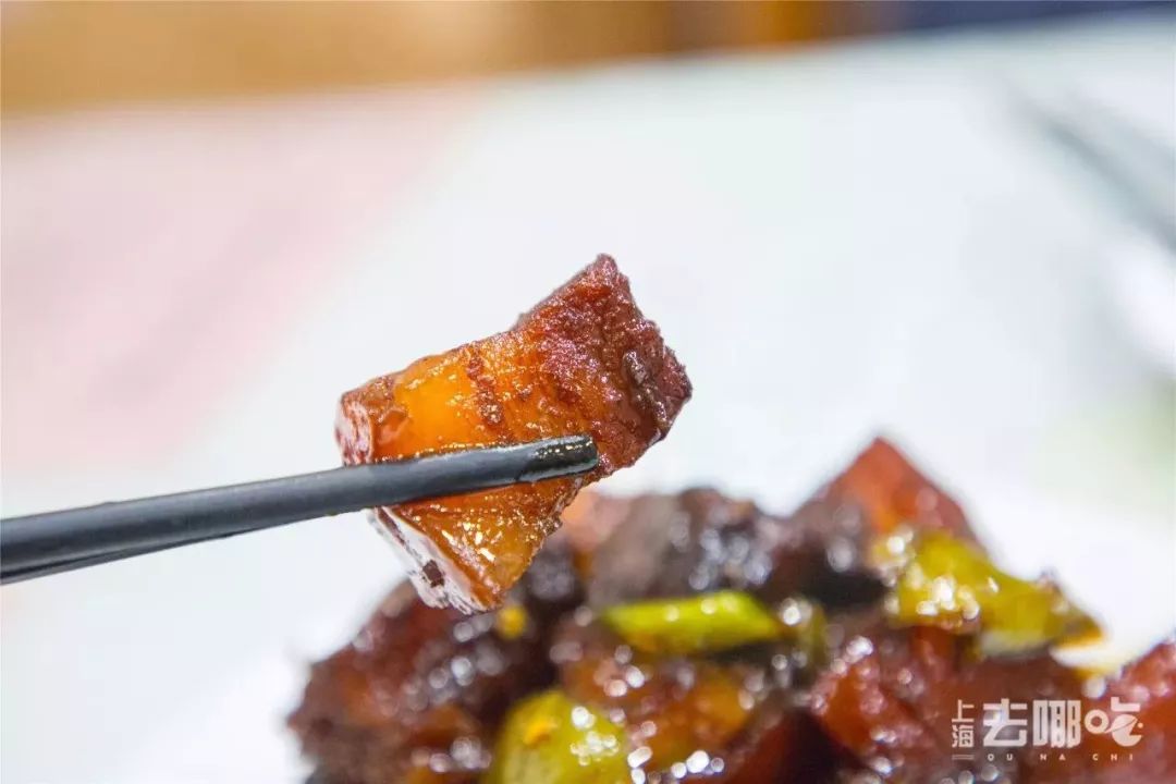 皮和肉都很嫩,遠觀則能聞之香味,近嘗能品出香甜的味道,這是典型的上海本幫菜特有的「濃油赤醬」,都在這塊紅燒肉里被詮釋得請清楚楚。