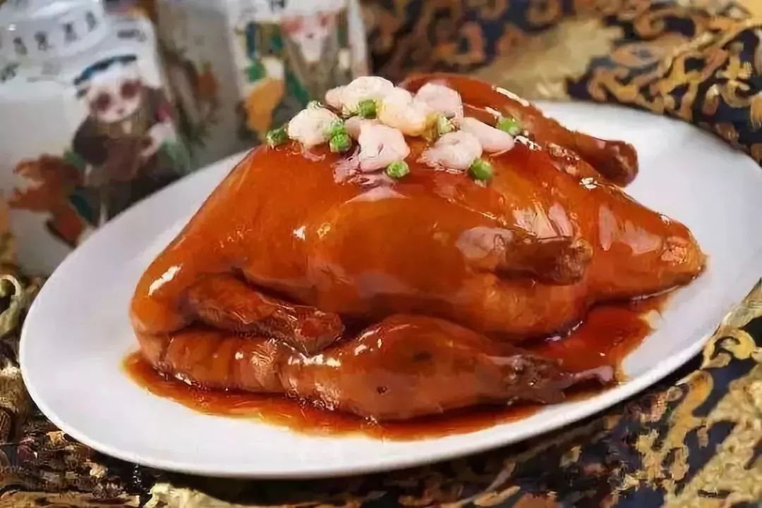 八寶鴨的燒法源於寧幫「鴻運樓」飯館,先旺火蒸3個小時,再自然冷卻3小時,再蒸2小時,開筷時,香氣四溢,糯滑可口,聞味而流涎,想把一切溢美之詞都給裡面包裹的血糯米。