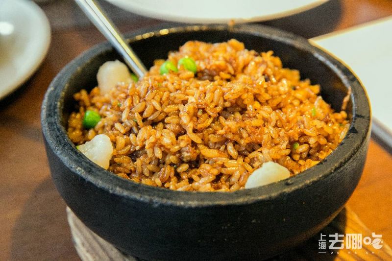 最是忘不了那一碗老上海醬油飯,米粒閃爍著誘人的油光,還有蝦仁和青豆點綴其中,每一口都非常滿足。溫熱的石缽為醬油飯保溫,吃到最後都不會冷掉。