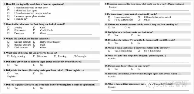 16如果你觀察了目標,你想搜集什麼信息?一些盜賊表示他們會觀察目標一段時間,尋找最合適的機會行竊。